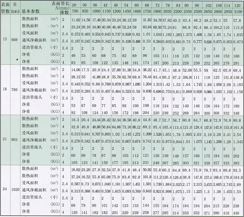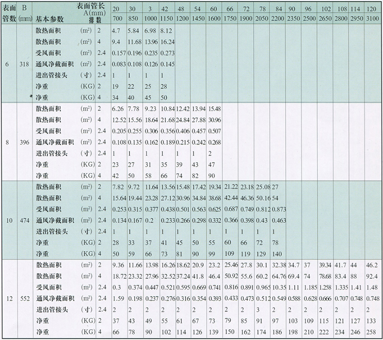 如采用四排,表麵管數為10,管長為42英寸時,則為GLⅡ-4-10-42。